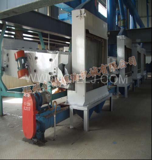 4、榨油工序:榨油機(jī)是一種連續(xù)螺旋榨油,適用于含油量較多的植物油料。榨出餅的結(jié)構(gòu)松而不粉碎,有利于溶劑滲透,餅的含油率和水份適用于浸出。